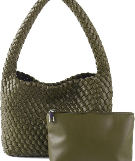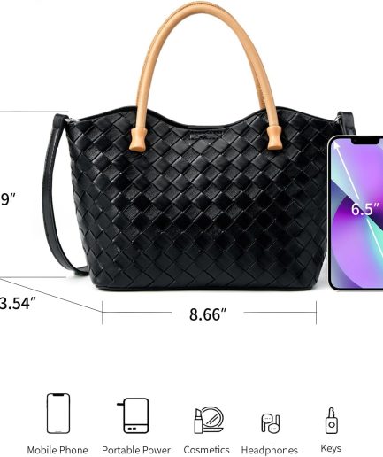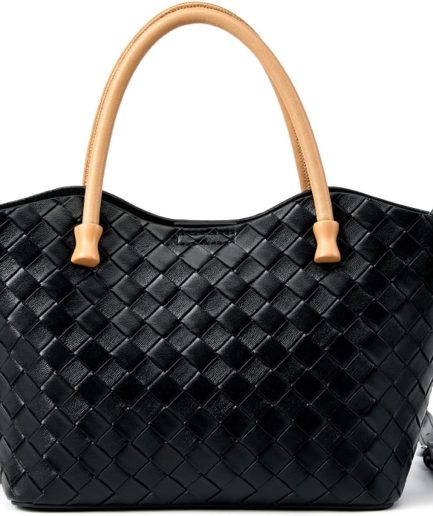 Handmade Woven Tote Bag – Women’s Vegan Leather Shoulder Bag With Purses