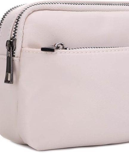 Crossbody Nylon Waist Pack with Adjustable Buckle Strap Fashion Multi Pocket Belt Bag| Ivory