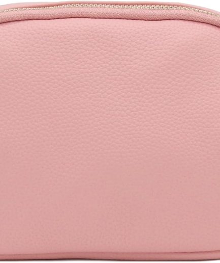 Lightweight Soft PU Pebbled Leather Fanny Pack Belt Bag with Gold Metal Buckle (Pink)