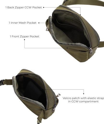 Crossbody Nylon Concealed Carry Waist Pack with Adjustable Buckle Strap Fashion Multi Pocket Belt Bag for| Olive