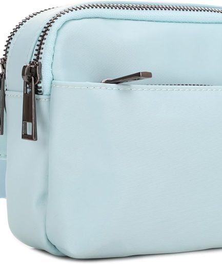 Crossbody Nylon Waist Pack with Adjustable Buckle Strap Fashion Multi Pocket Belt Bag | Light Blue