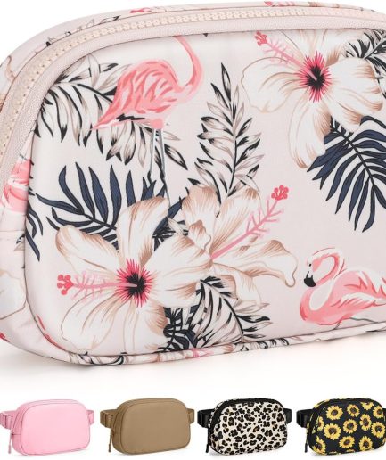 Fanny Packs for Women Cross Body Bag Waterproof Belt Bag with Adjustable Strap and Zipper Back Pocket Small Crossbody Bags Fashion Waist Packs for Workout Travelling(Flamingo Print)