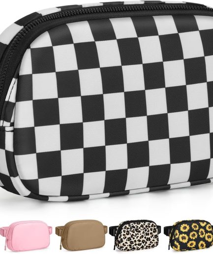 Fanny Packs for Women Cross Body Bag Waterproof Belt Bag with Adjustable Strap and Zipper Back Pocket Small Crossbody Bags Fashion Waist Packs for Workout Travelling(Checkered Black)